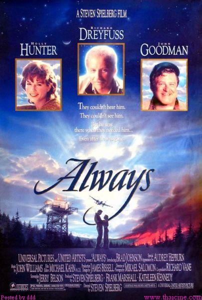 (ID:122923) ขอพูดถึง Always ก่อนก็แล้วกัน เพราะมีเรื่องให่พูดถึงเยอะมากAlways สร้างจากหนังเก่าเรื่อง A Guy Names Joe (1943) นำแสดงโดยสเปนเซอร์ เทรซี่ หนังเรื่องนี้เป็นเรื่องที่สตีเวน สปิลเบิร์ก โปรดปรานมาในวัยเด็ก เมื่อมีโอกาสเขาก็นำกลับมาสร้างใหม่ โดยยังคงอารมณ์โรแมนติคไว้เช่นเดิม และยังเพิ่มความแฟนตาซีในแบบฉบับของสปิลเบิร์กอีกด้วย